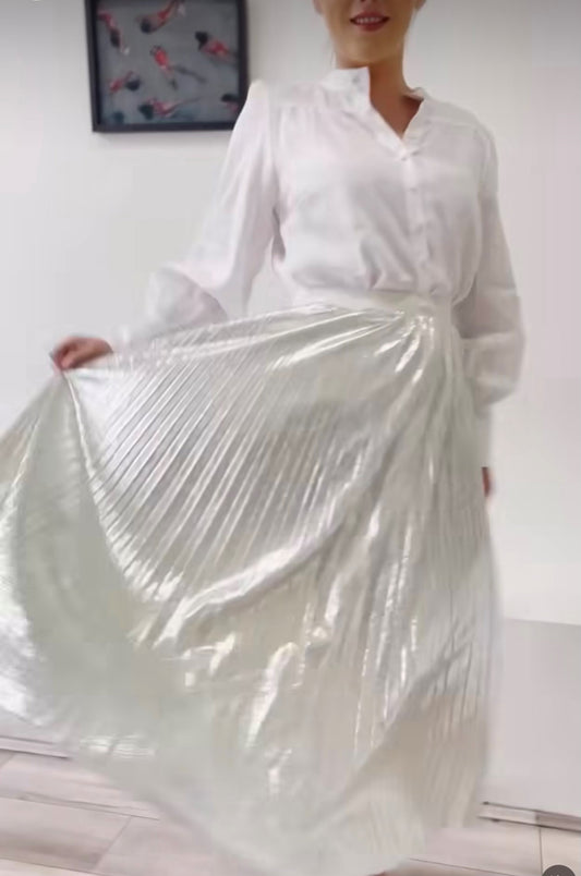 Fria the Label Sparkle Silver Pleated Skirt