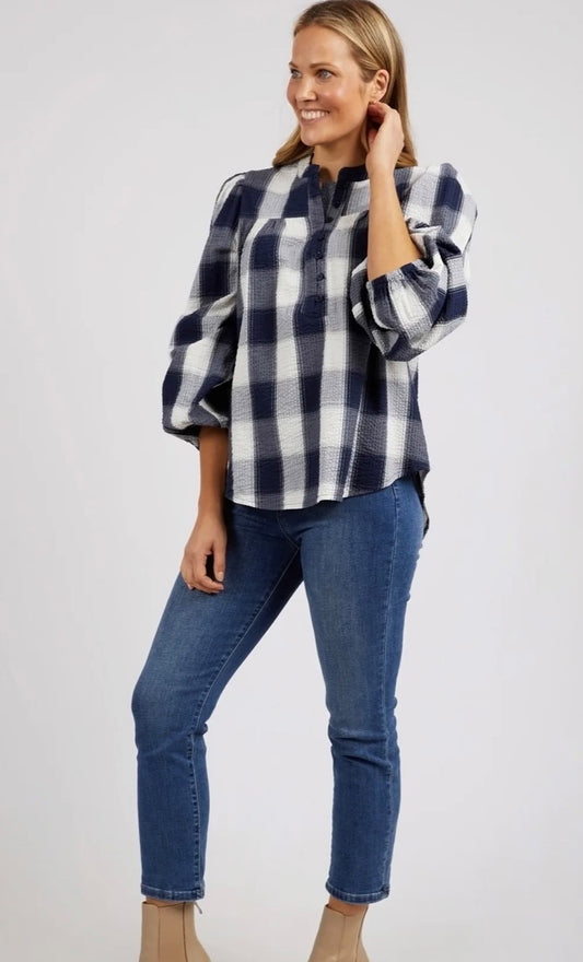 Elm Cedar Navy Check Blouse 8138015.NAVY