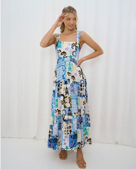 Iris Maxi the Label Tie Back Maxi Blue Print