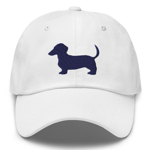 Tick all the boxes in style, comfort and cuteness with this gorgeous 100% chino cotton twill white dachshund cap from Sutton Sisters Australia. With a navy dachshund delicately embroidered on the front, this cap comes with an adjustable strap and antique buckle to provide both a classic and on trend look.